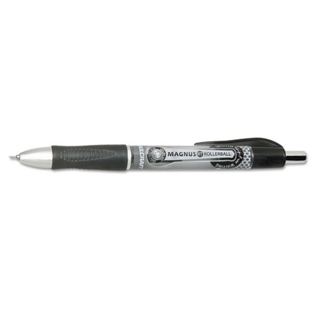 This refillable rollerball pen features a smooth design and innovative liquid ink feed system that is safe for air travel and ensures a steady writing experience. The rubber grip, free of latex, adds comfort while writing, and a see-through barrel allows for easy monitoring of ink levels.