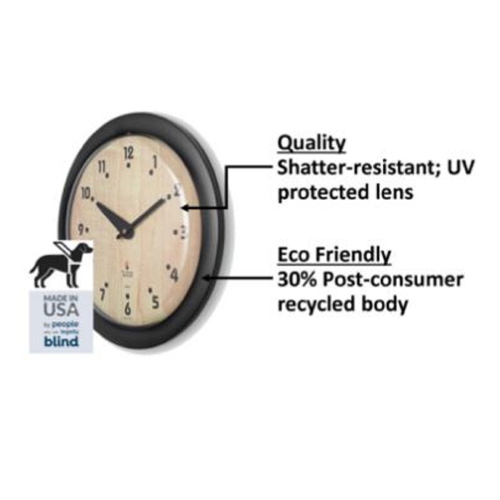 Skilcraft slimline radio-controlled atomic quartz movement keeps accurate time to within one second of deviation per 30 million years and automatically changes for Daylight Saving Time. Use only in the continental US in daylight savings states. Clock hour hand makes two revolutions every 24 hours. Features easy to read black Arabic numbers, black minute and hour hands, and red sweep second hand. Frames will biodegrade within an average of 2 years in a landfill and contain 30% post-consumer recycled content.