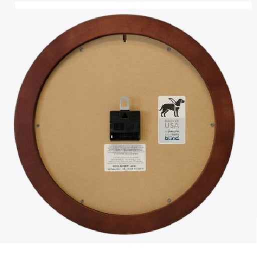AbilityOne, JWOD, Skilcraft, SourceAmerica, NISH, NIB, National Industries for the Blind, Self-Set Wall Clock, Battery Operated, Hardwood Round Frame, 16" Diameter, Mahogany Case/White Face; 6645015574606, 6645-01-557-4606, 5574606, NSN5574606