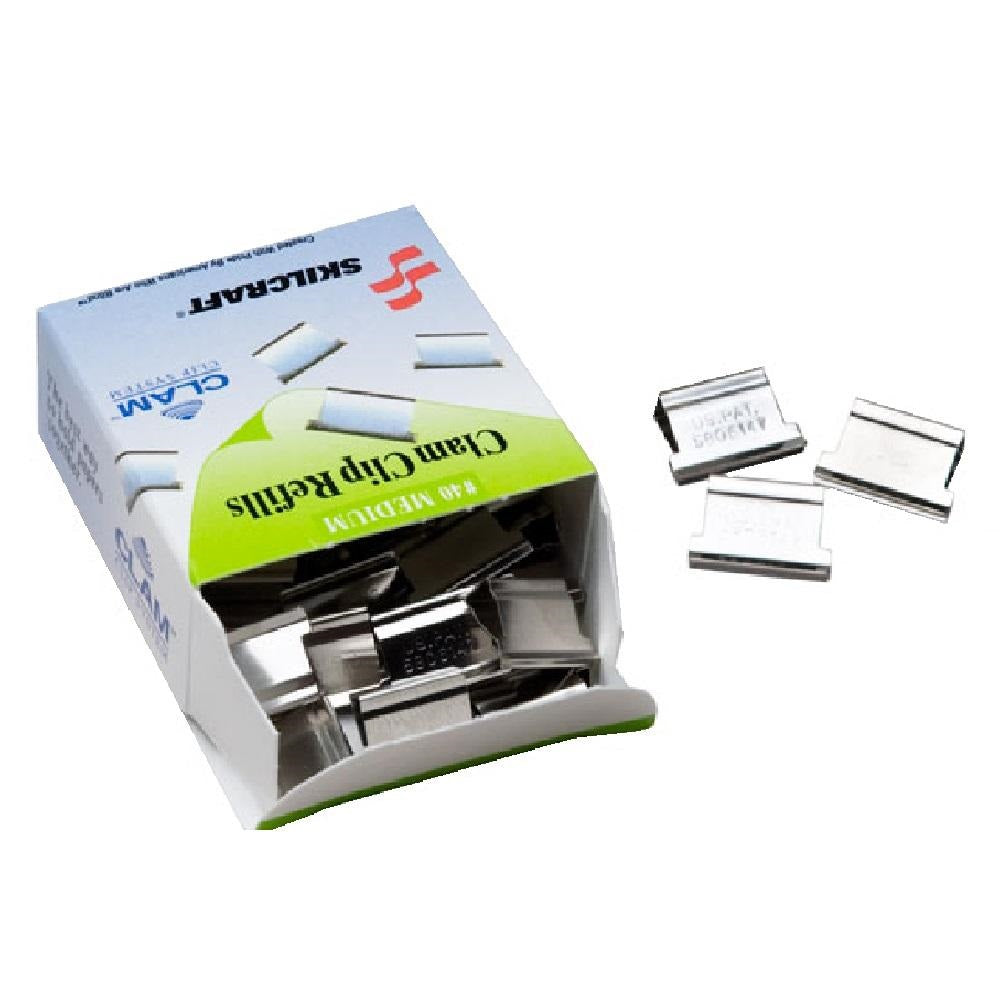 Make sure your papers are always neat and secure with the Clam Clip Dispenser Refill for medium sized papers. Each refill pack contains 50 reusable, removable Clam Clips made of durable stainless steel that won't crease or bend the edges of your paper. The handheld dispenser allows for clipping at any angle, ensuring that your papers stay in place without any creases or bent edges. Perfect for fastening up to 40 pages, this medium sized clip is a must-have for any office or workspace.