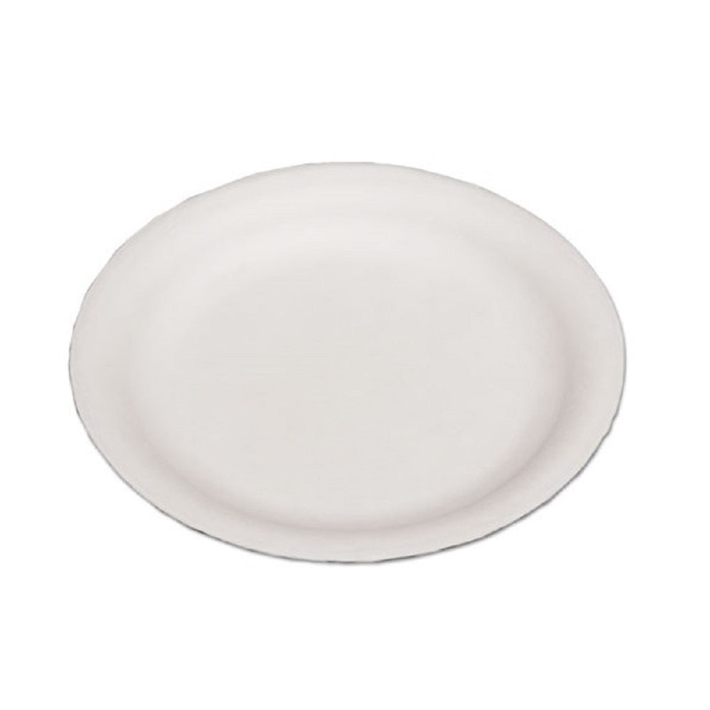Durable paper plates from molded pulp, measuring 9" in diameter, are ideal for any occasion and contain a flat base for secure stacking and nesting. These plates are water and grease resistant and certified compostable; however, composting may not be available in some areas. 500 plates are included in each carton, and the plates are FDA and TAA compliant.