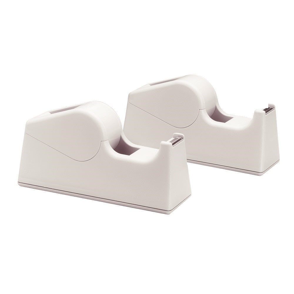 PLASTIC TAPE DISPENSER, RUBBER FEET - WHITE/GRAY