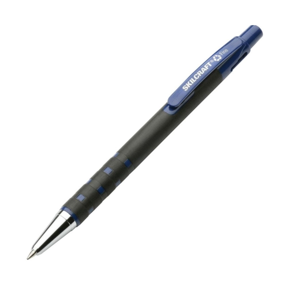 Experience the excellence of Skilcraft® with this updated retractable ballpoint pen, featuring a non-slip, rubberized grip for enhanced comfort and control. Crafted from 55% post-consumer materials and 55% total recycled content, this pen uses smooth writing ink that resists fading, smearing, and smudging.