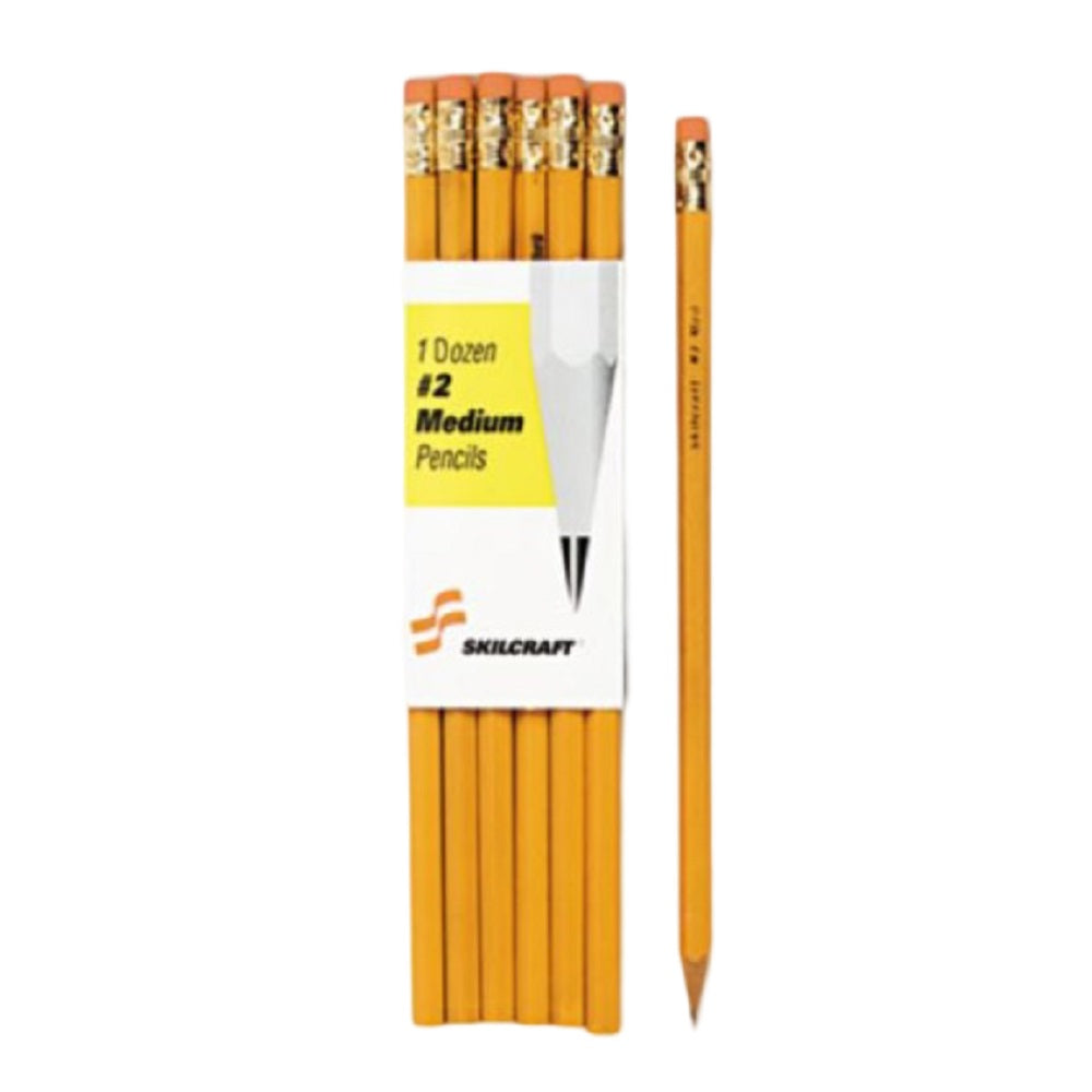 Experience the long-lasting power of Skilcraft No. 2 Medium Lead Pencil! Never worry about dull tips or constant sharpening—this wood-cased pencil retains its point with ease! An included phthalate- & latex-free eraser gives you the confidence to tackle any task. Made in the USA with 100% virgin wood, this 12-pack of yellow pencils is TAA Compliant and ready to help you take on any challenge!