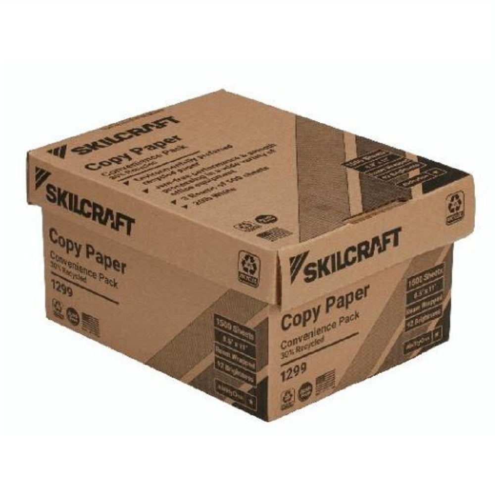 Ensure that your printer and copier are always stocked with post-consumer recycled copy paper. This high-volume paper offers excellent contrast for your copies. The convenience pack copy paper is ream wrapped and contains post-consumer recycled material. Paper size is 8.5 x 11, weight is 20 lb Bond, and color is white.