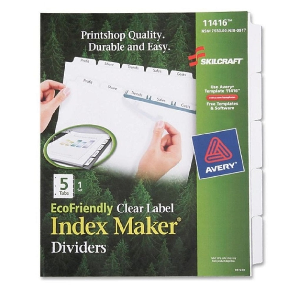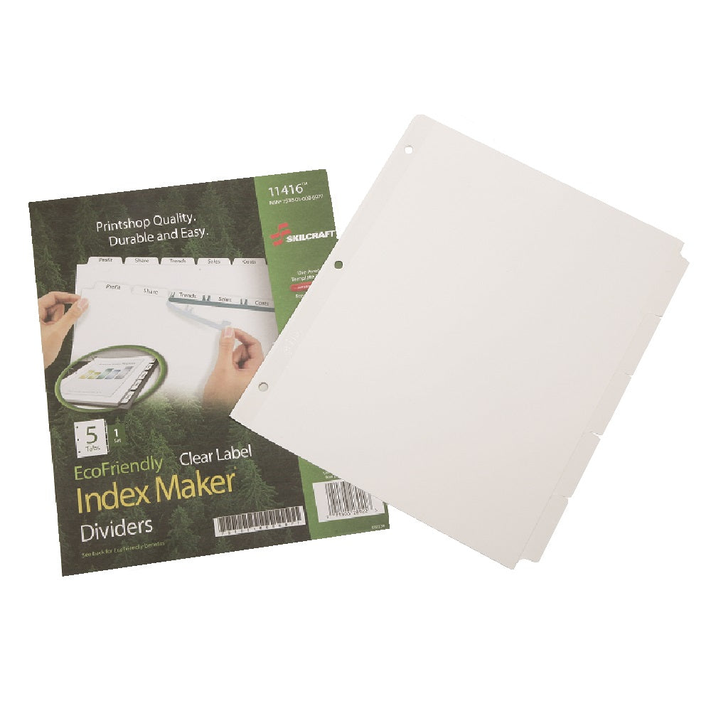 SKILCRAFT® Index Maker® Dividers With 5 Tabs Let You Customize Professional-Looking Presentations. Includes Clear Easy Apply™ Labels That Virtually Disappear On White Dividers. 100% Post-Consumer Waste Material. Supports The AbilityOne® Program.