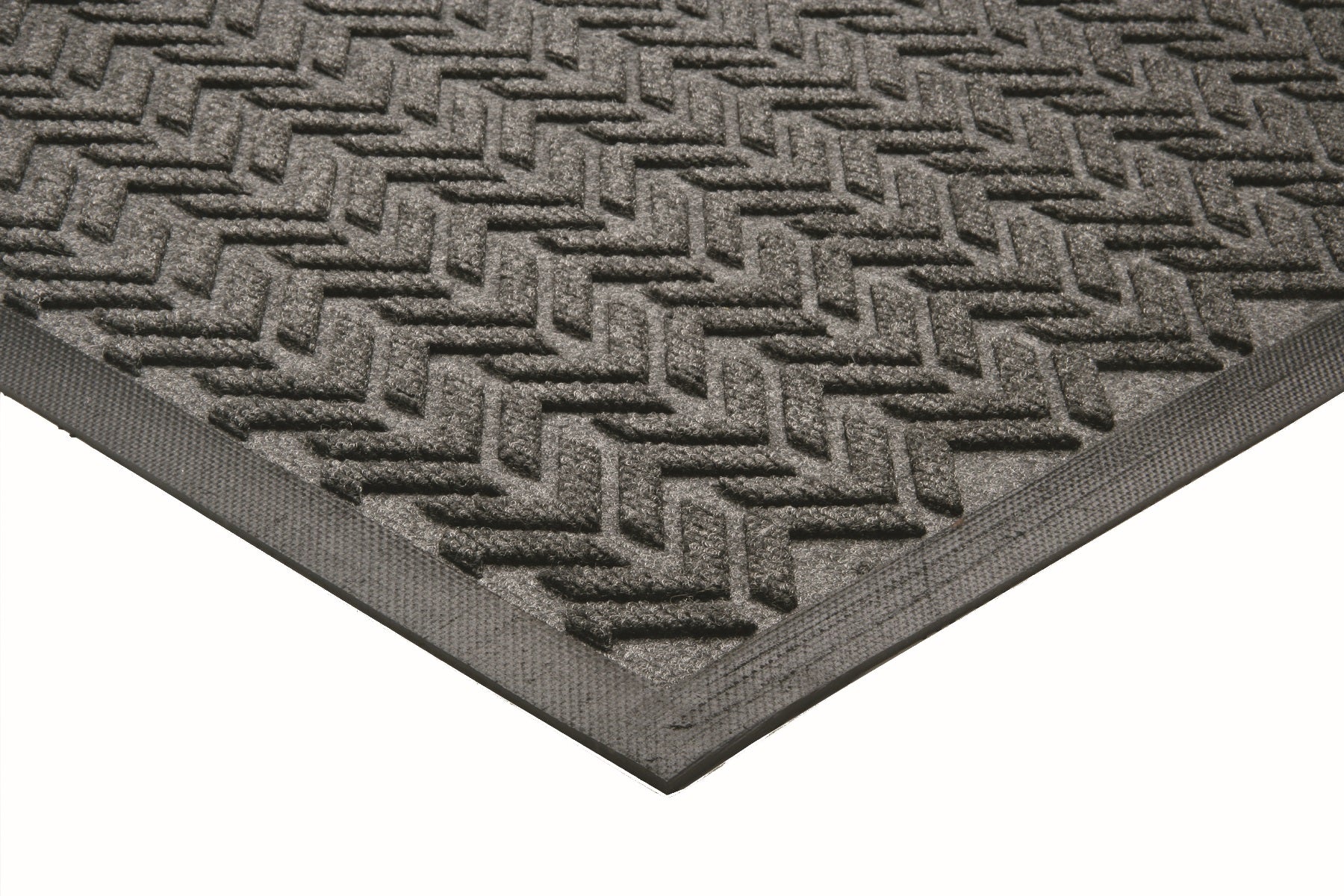 The second mat in the three-mat system, place just inside the entrance to stop additional soil and water from entering the building. Protects flooring from costly damage while also guarding against falls caused by dirty, wet or slippery floors. Excellent wiping and absorbing power. Slip-resistant backing holds mat firmly in place. Economy-Recycled PET surface prevents up to 96 bottles per mat from entering landfills. Rubber backing. 3/8 inch thick. Slip-Resistant Rectangular Mats-Wiper Mat. Green Product, Recycled.
