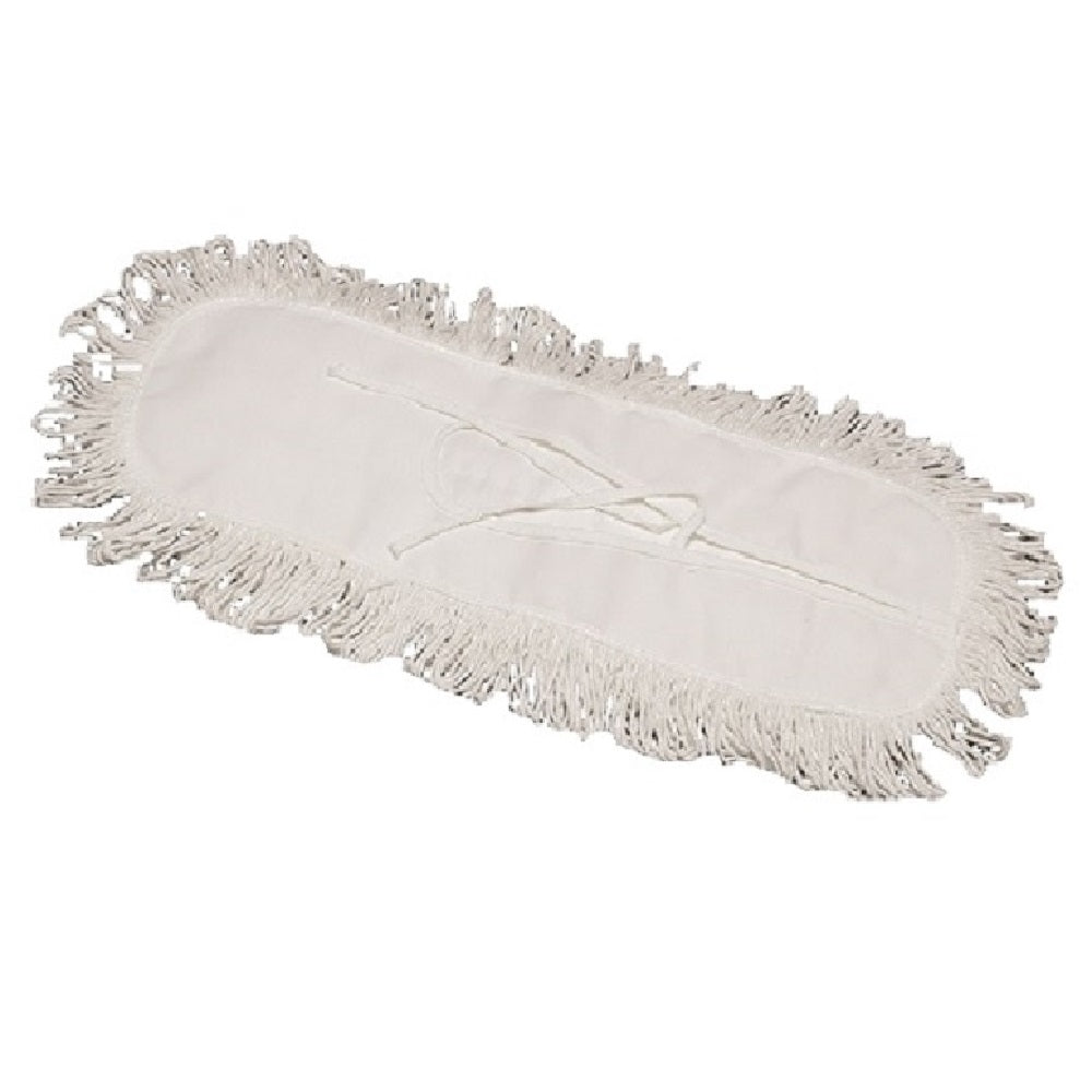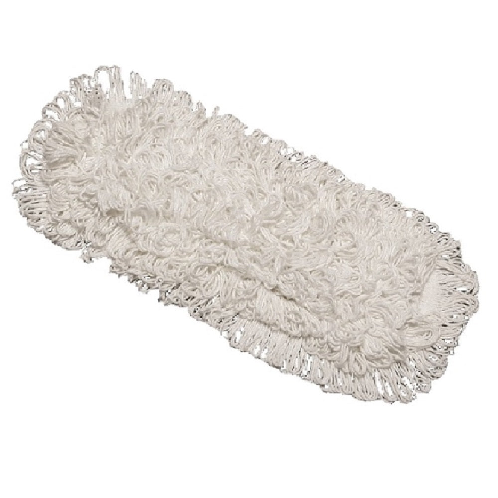 Features antimicrobial yarns which aid in preventing the growth of bacteria, mold and mildew while reducing odors. Maximum dust-attracting colored 100% synthetic fiber looped-end yarn is sewn into pre-shrunk polyester fabric to allow multiple washings with minimal shrinkage. Yarn contains 25% PET content. Key-hole openings make changing heads easy. Multiple ties firmly secure head to frame.