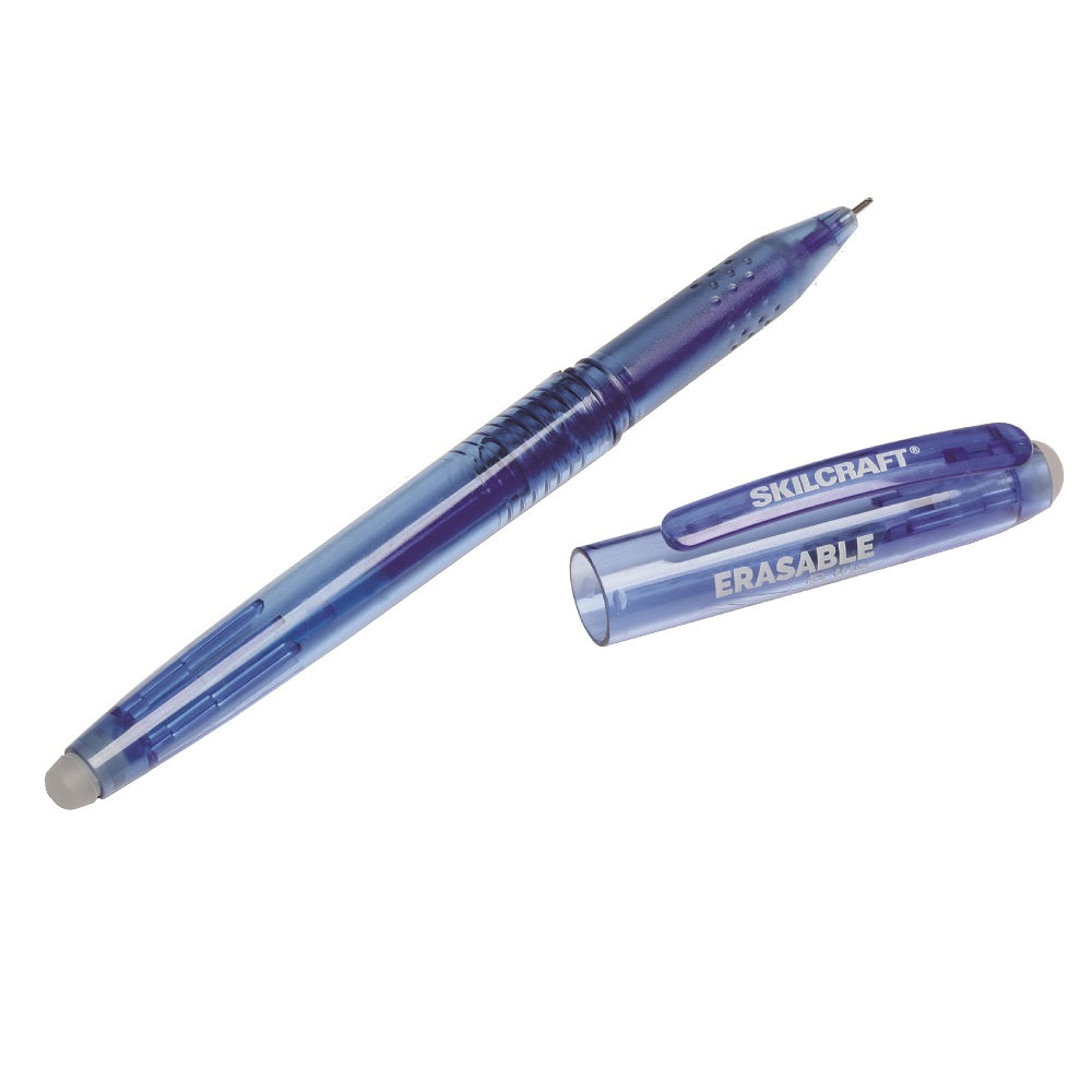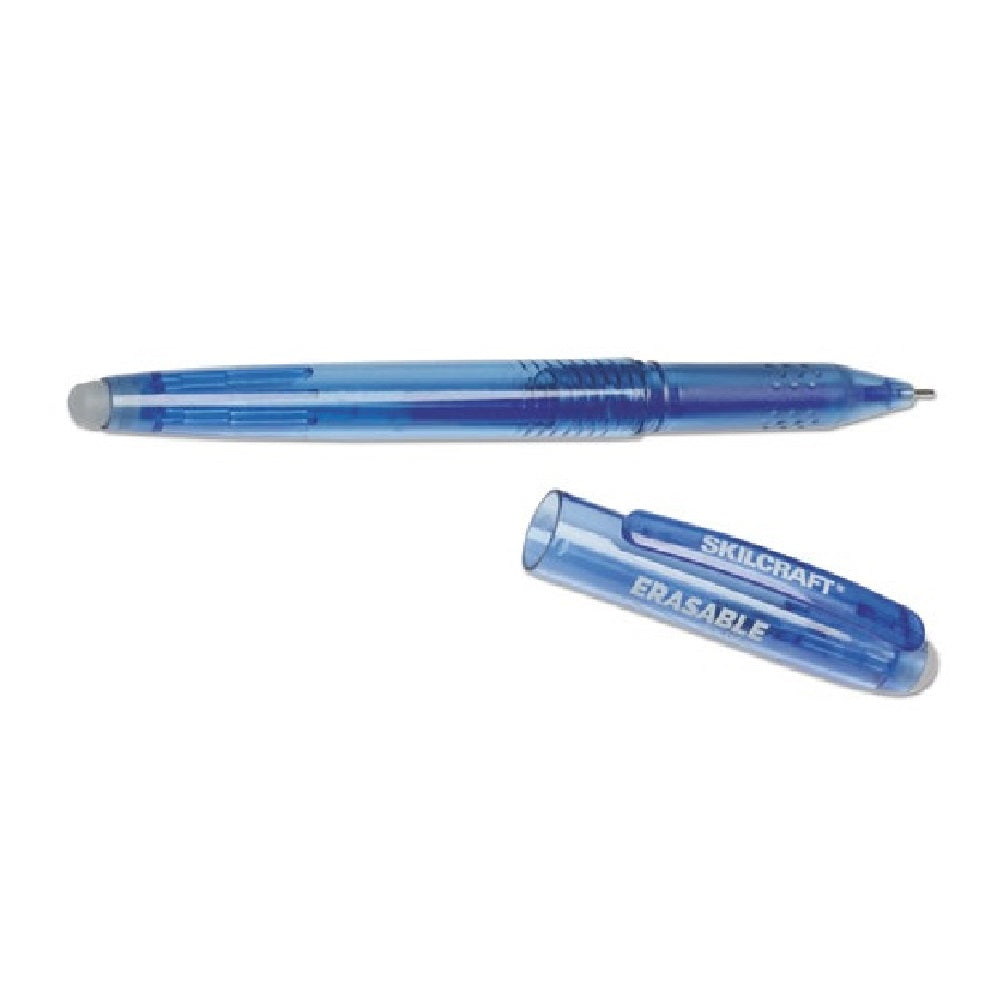 The Skilcraft Erasable Re-Write Gel Stick Pen features a special ink that allows you to write, erase and rewrite without damaging documents. Contains gel ink for a smooth writing experience and a specially designed eraser removes ink without a trace. Ideal for documents and notes that require frequent edits and revisions, the Skilcraft Erasable Re-Write Gel Stick Pen provides a reliable and efficient writing experience.