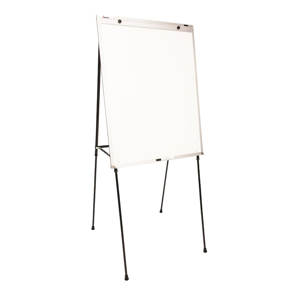 • Melamine Dry-Erase Writing Surface with Adjustable Silver-Aluminum Frame and Spring-Loaded Flip Chart Holder
