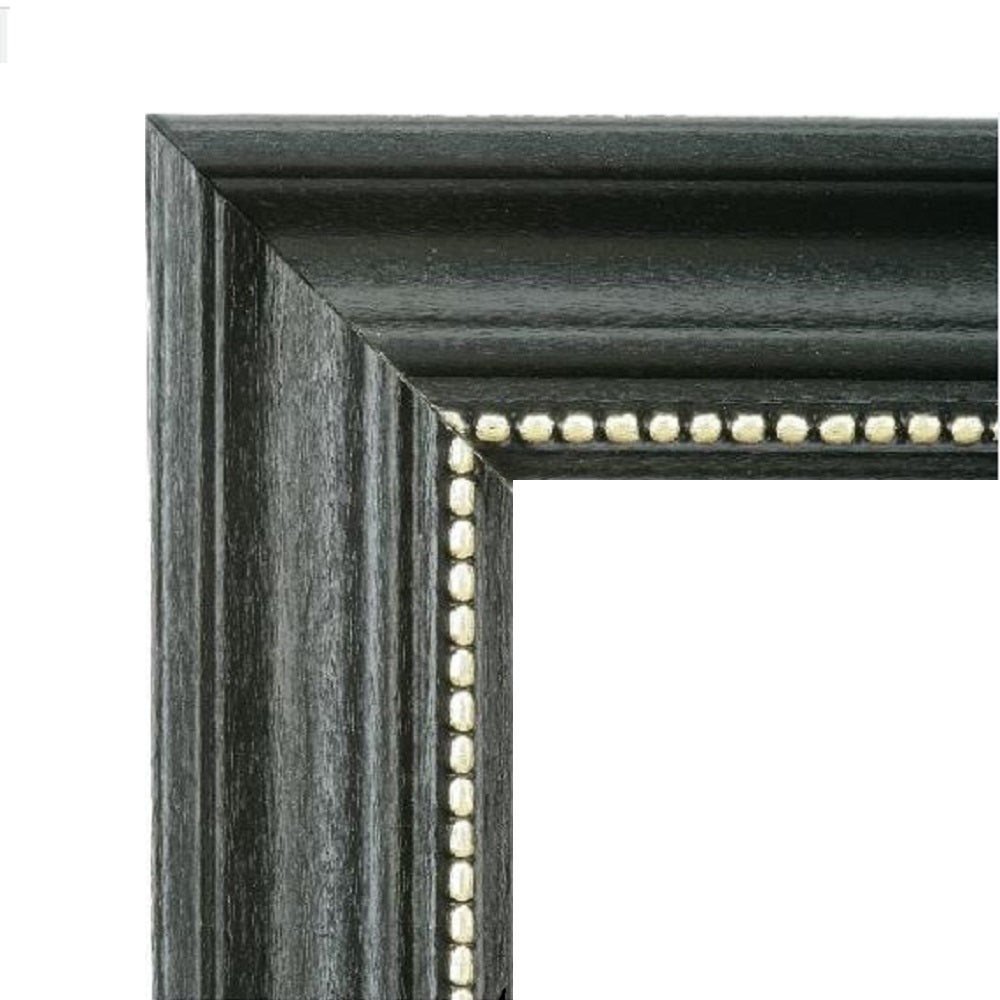 Hardwood finished frame with gold beaded 3/4" molding. Includes white beveled mat, clear glass, and wall mounts.
