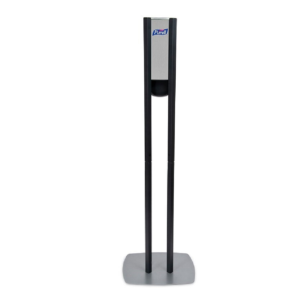 Touch-free dispenser stand for Purell® hand sanitizer. Low profile baseplate designed to maximize stability. Lightweight and easily moved when cleaning the facility. Ensure superior hand hygiene in your establishment with this Purell® 7218-DS ES8 graphite automatic hand sanitizer dispenser with a graphite floor stand. The stand elevates the dispenser to the perfect height for your guests, so they can easily clean and sanitize their hands on-the-go. The dispenser boasts a sleek graphite black the stand has graphite panels to seamlessly fit into your office, waiting room, or lobby. Use with compatible ES8 hand sanitizer refills (sold separately).