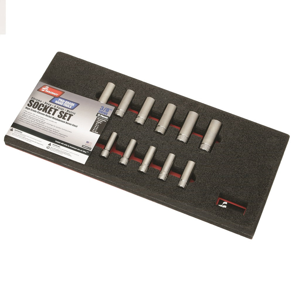 Pro-Grade 3/8" Drive Socket, Deep, Metric 6-Point Fasteners 12 Piece Set
