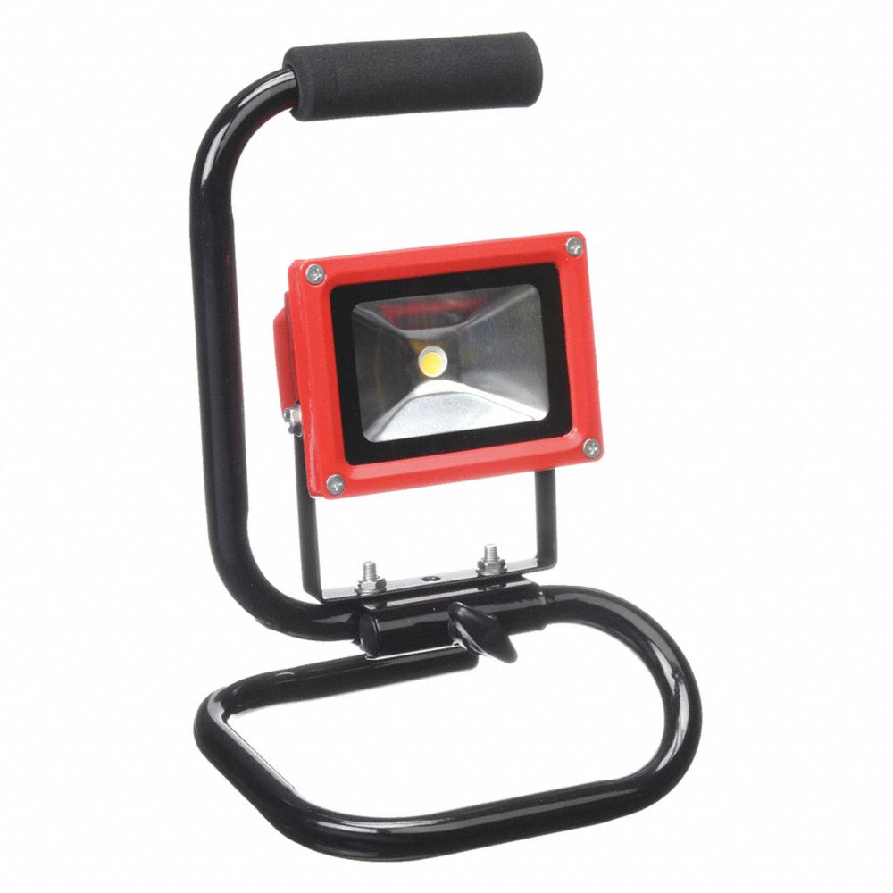 Skilcraft Aluminum Frame Rechargeable Floor Work Lamp with 10-watt Chips on Board (COB) technology delivers superior quality light while saving money. COB is a new technology of LED packaging for LED light engine. Multi LED chips are packaged together as one lighting module. Features a padded grip handle and non-skid feet, and weatherproof switch. Produces up to 600 lumens of long lasting light and lasts 3-5 hours when fully charged. Includes a wall charger, automobile charger and Li-Ion rechargeable batteries. UL® listing on chargers.