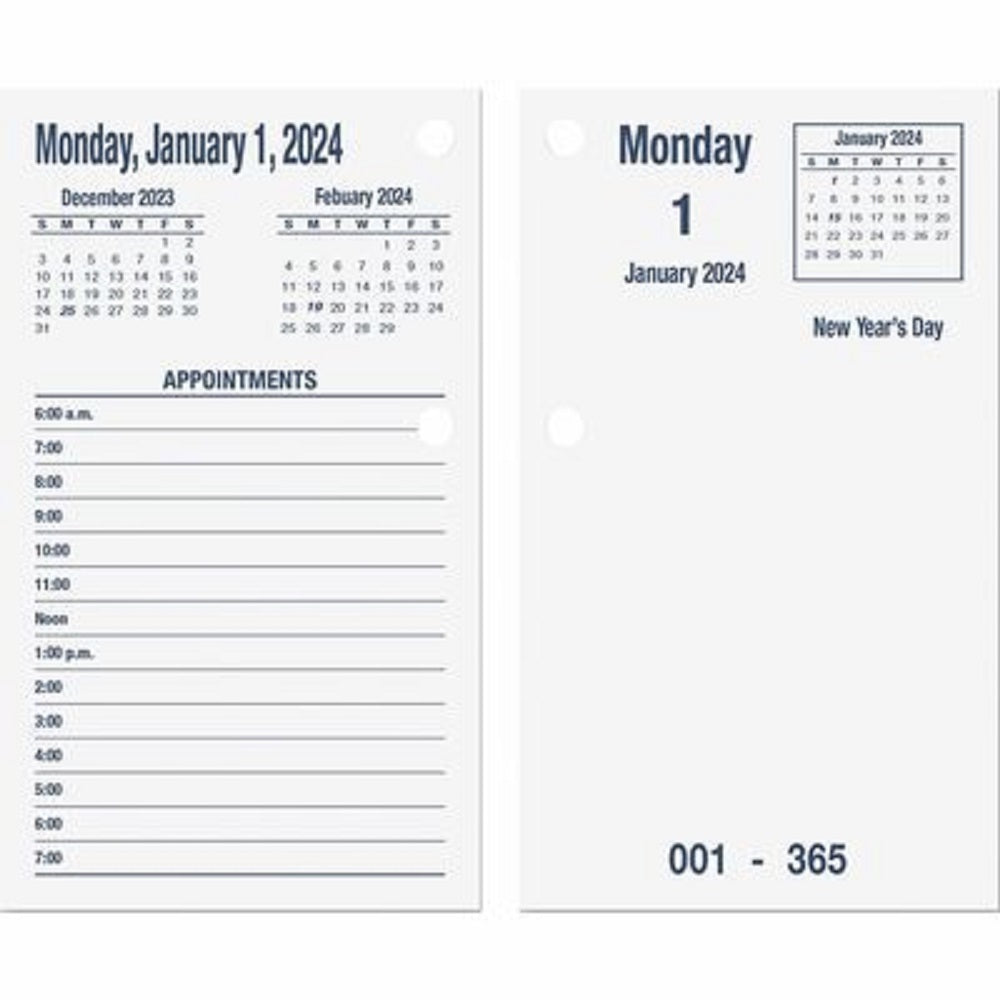 DAYMAX Type II Calendar Pad, 6 x 3.5, 12-Month (Jan to Dec): 2024