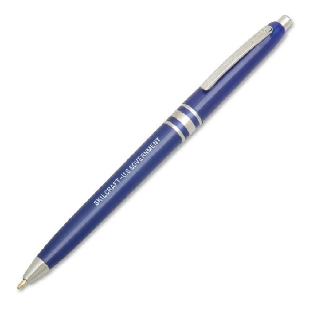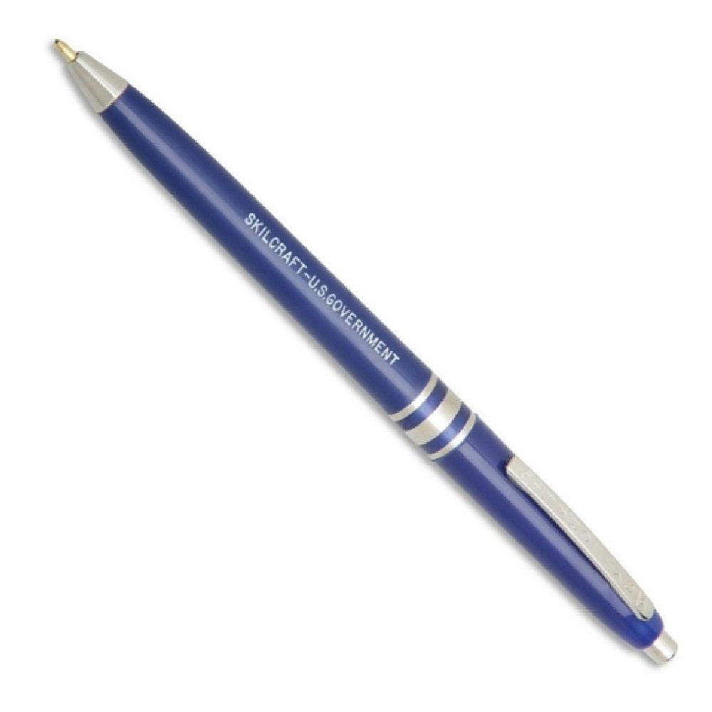 Skilcraft® Retractable, refillable, ball point pen is imprinted with "U.S. Government" and is a rugged, yet economic "workhorse" of the U.S. Government and Military. Ink does not skip or smear. Brass refill cartridge for extended shelf life. The barrel color indicates ink color. Pen is designed to write anywhere including land or water regardless of climate and altitude.