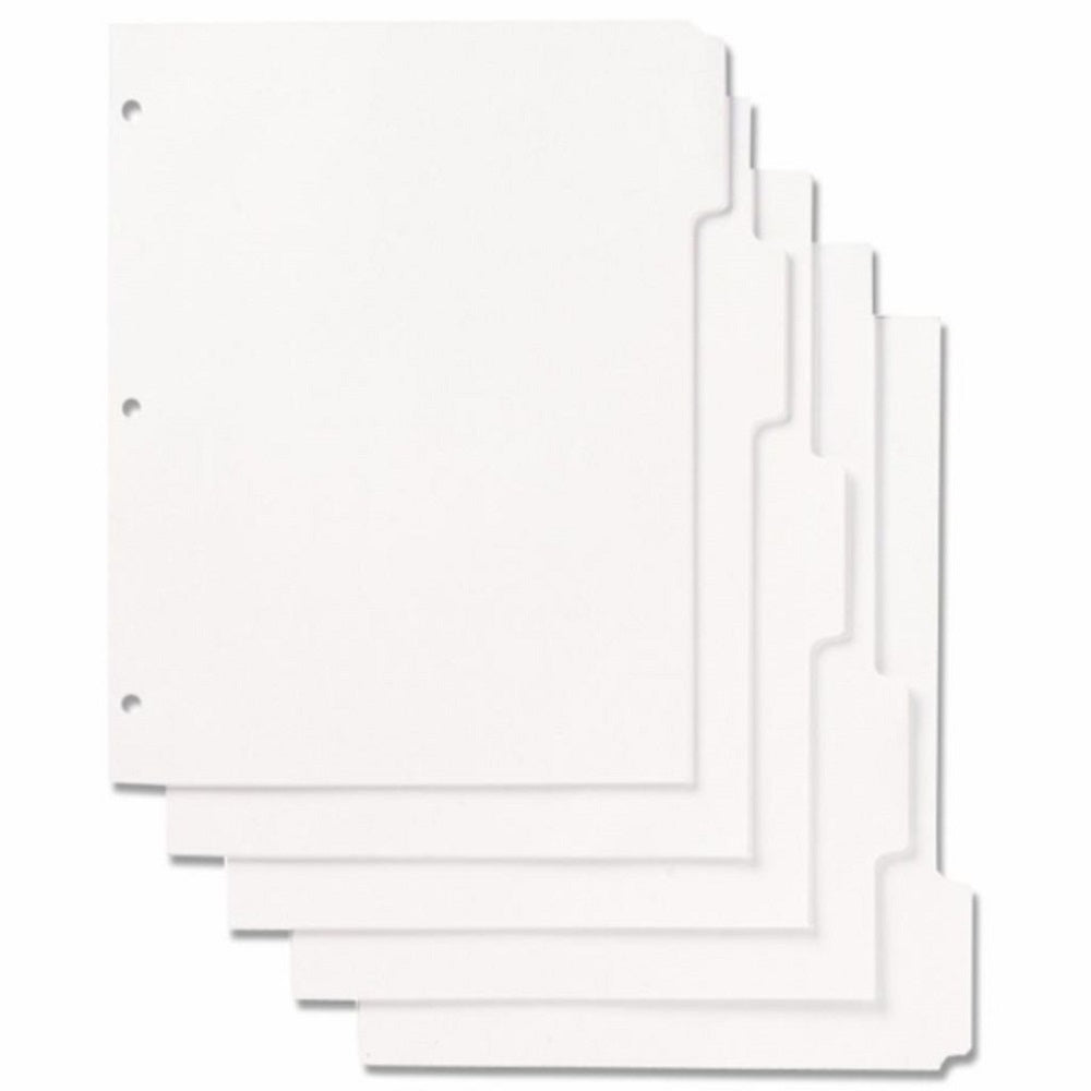 Better organize your three ring binder with these white, tabbed index sheet sets. The hole punched, ledger stock sheet sets with 1/5 cuts are easy to use and great for cutting down time spent searching for documents. This product was made using wood sourced from a certified managed forest. Meets CPG Guidelines