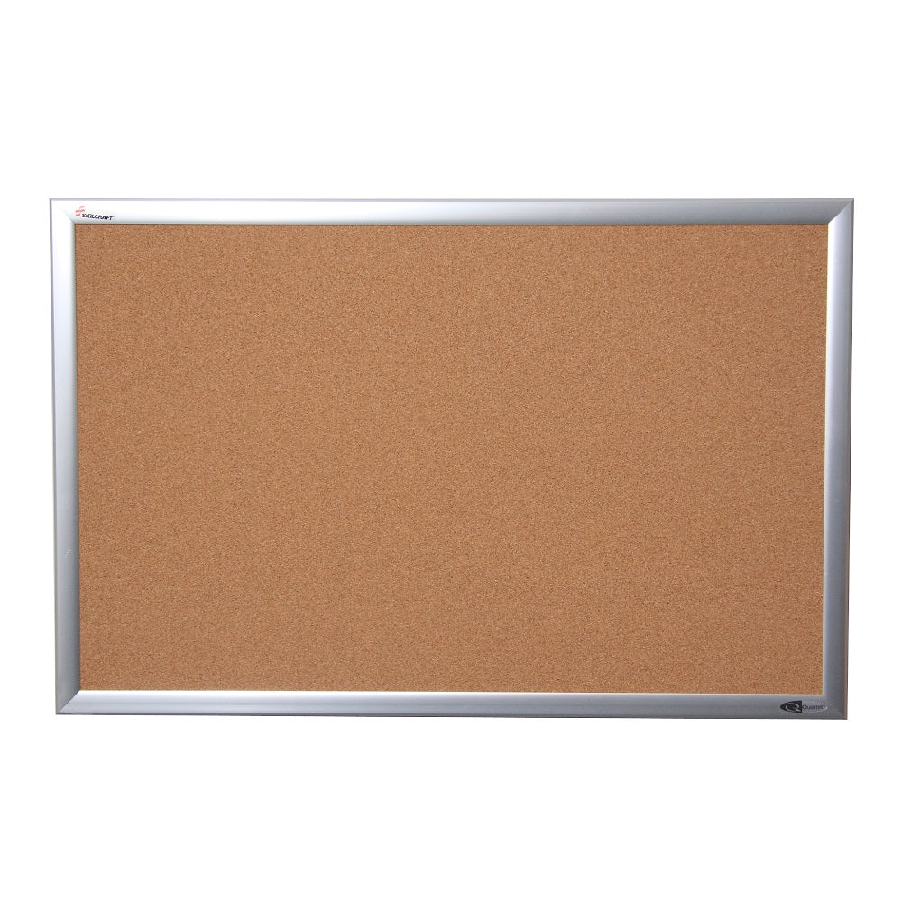 This natural cork bulletin board is perfect for conveniently displaying essential information. It comes with a satin-finished, anodized aluminum frame that is built to withstand regular use. The cork surface easily self-heals to conceal pin holes, and its fiberboard backing prevents warping for long-lasting endurance. Complete with mounting hardware, and compatible with push pins and thumbtacks, this board contains a minimum of 30% pre-consumer recycled aluminum.