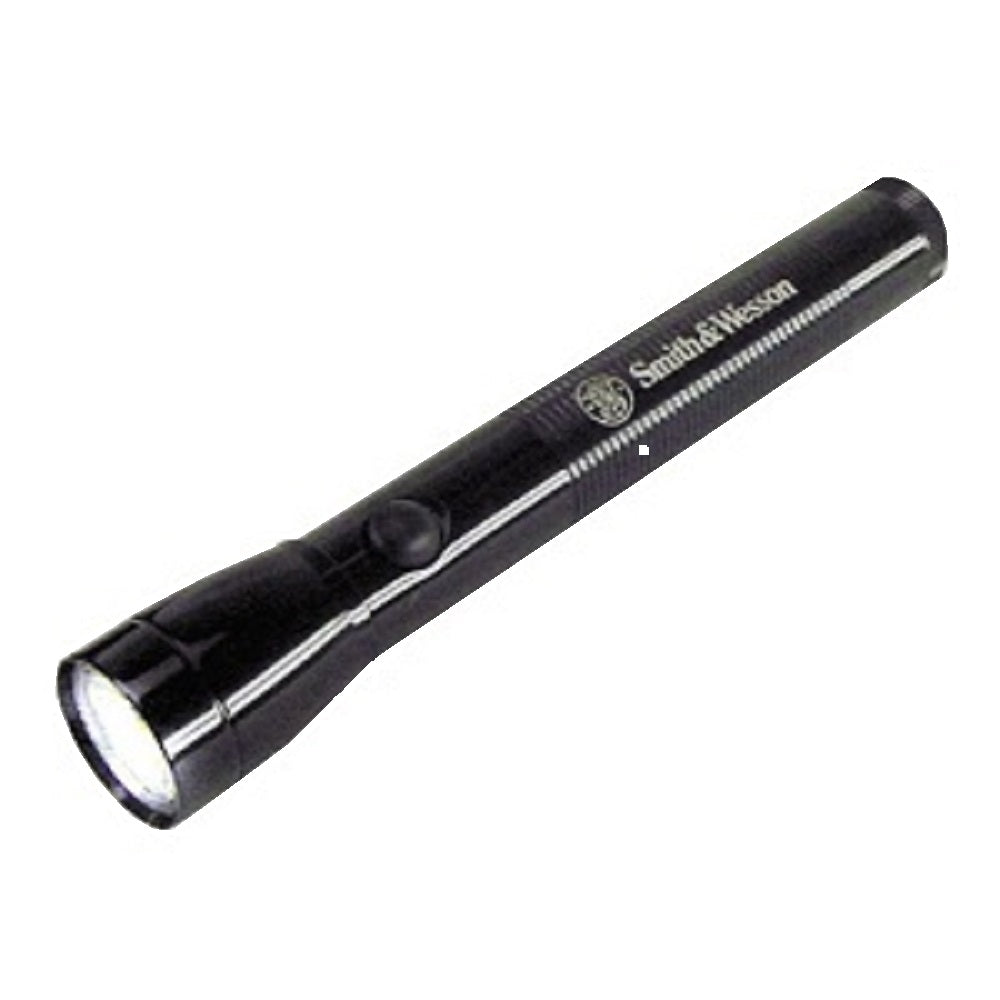 Premium SKILCRAFT aluminum flashlight with ultra-bright LED bulb, adjustable spot-to-flood beam, and waterproof anodized body. Includes 2 AA batteries and belt holster.