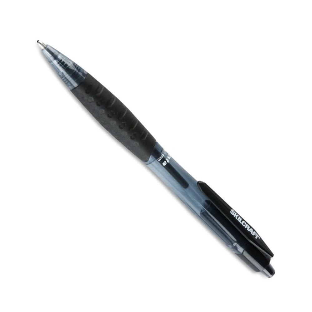 Skilcraft® Create bold, vivid lines with this smooth writing, retractable ballpoint pen that features a cushion grip for maximum control and added writing comfort. Available in black, blue or red ink, the pocket clip and rubber grip on this refillable pen identify ink color and the tinted transparent barrel allows users to monitor ink levels.